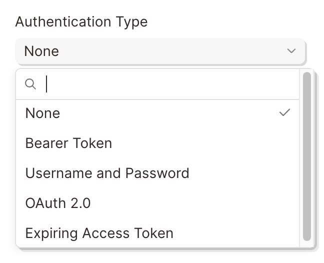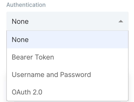 Bearer Tokens, Username/Password (also referred to as Basic), and OAuth2.0. Parabola has integrated these authentication types directly into this step.