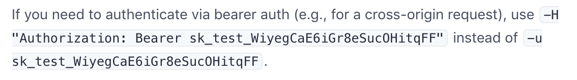 Bearer Token from the Authorization menu and add “sk_test_WiyegCaE6iGr8eSucOHitqFF” as the value.