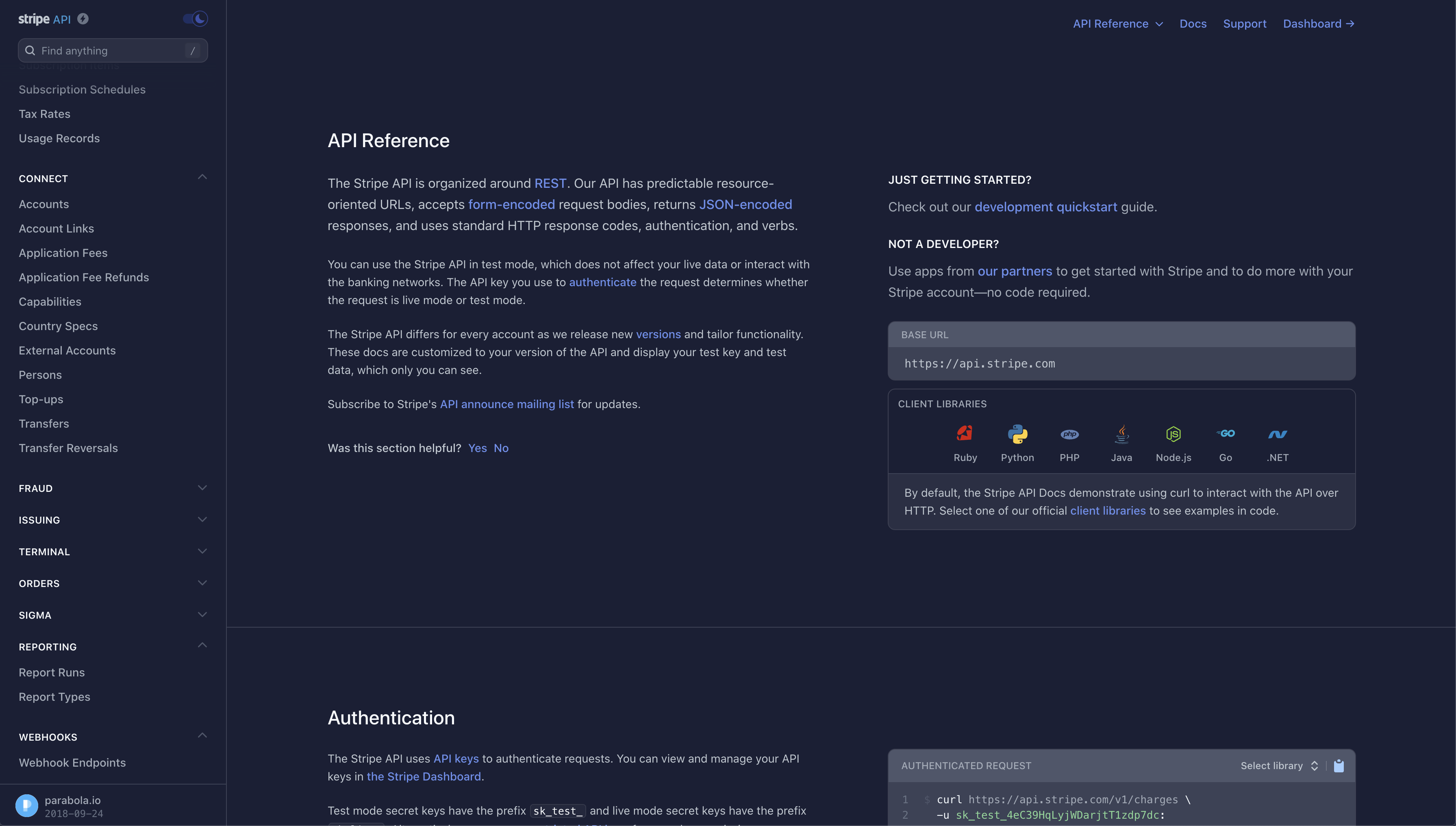The first step to connect to an API is to read the documentation that the service provides. Oftentimes, the documentation is commonly referred to as the API Reference, or something similar. These pages tend to feature URL and code block content. The API Reference, always provides at least two points of instruction. The first point outlines how to Authenticate a request to give a user or application permission to access the data. The second point outlines the API resources and Endpoint URLs, or where a request can be sent.