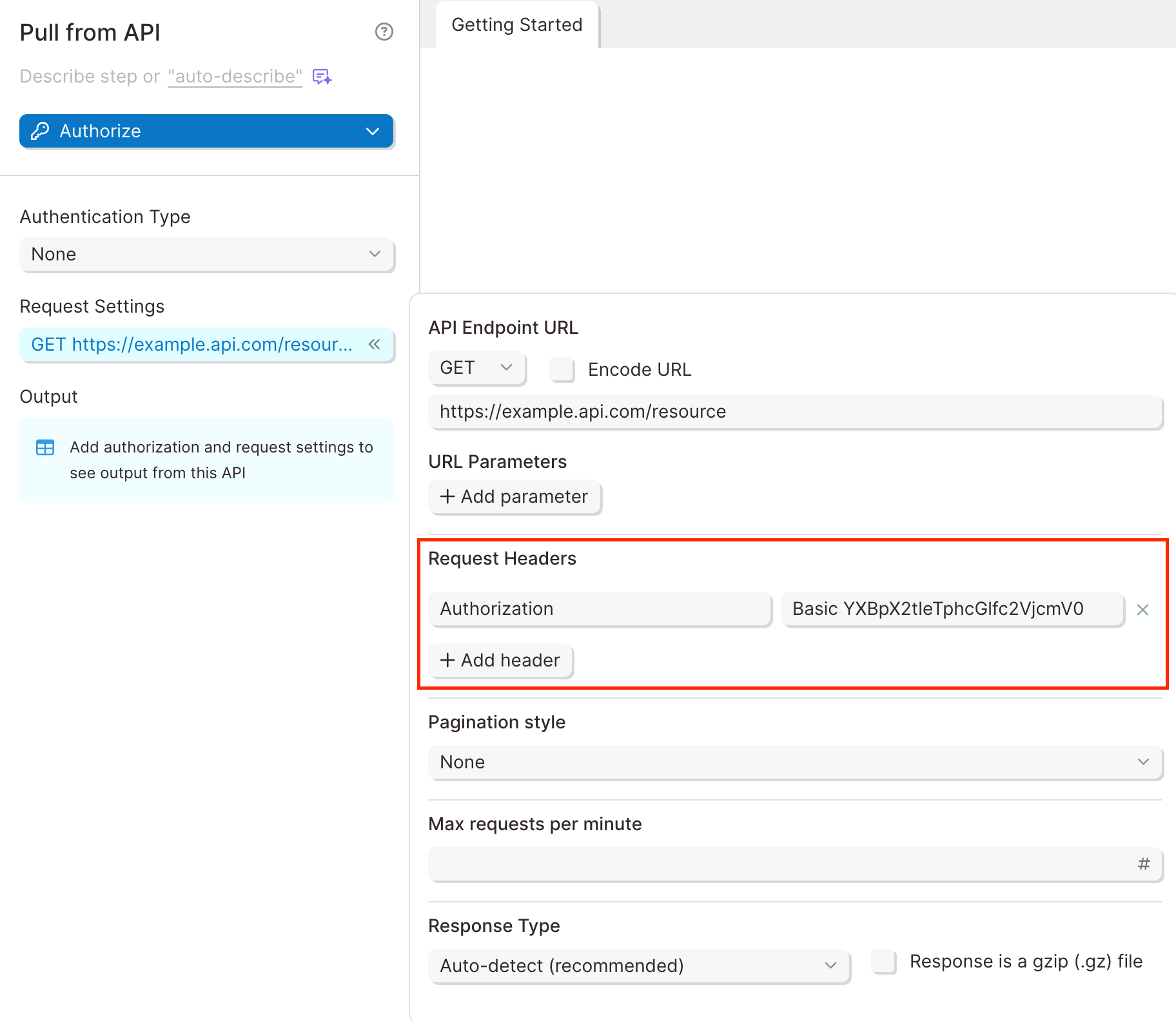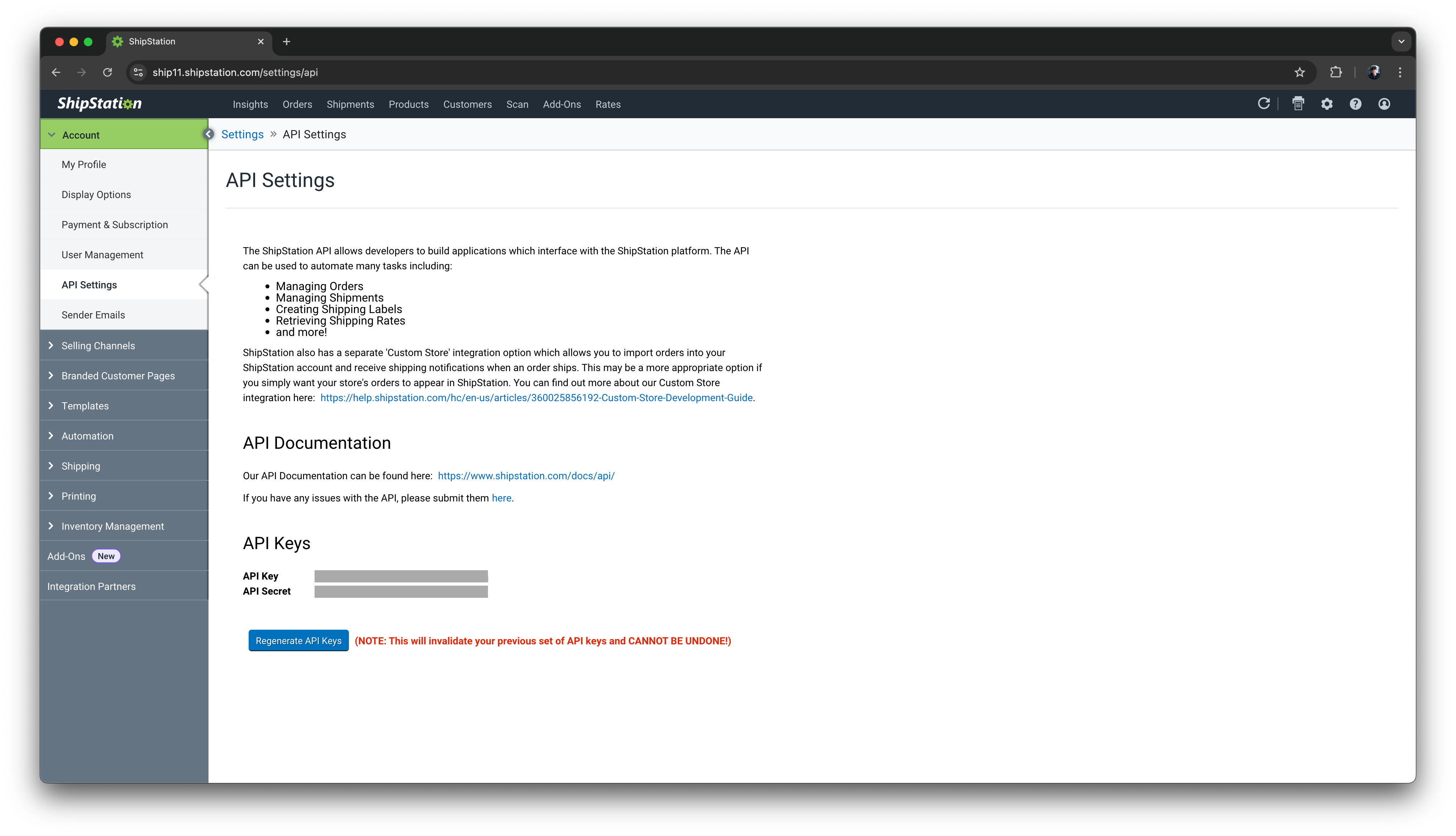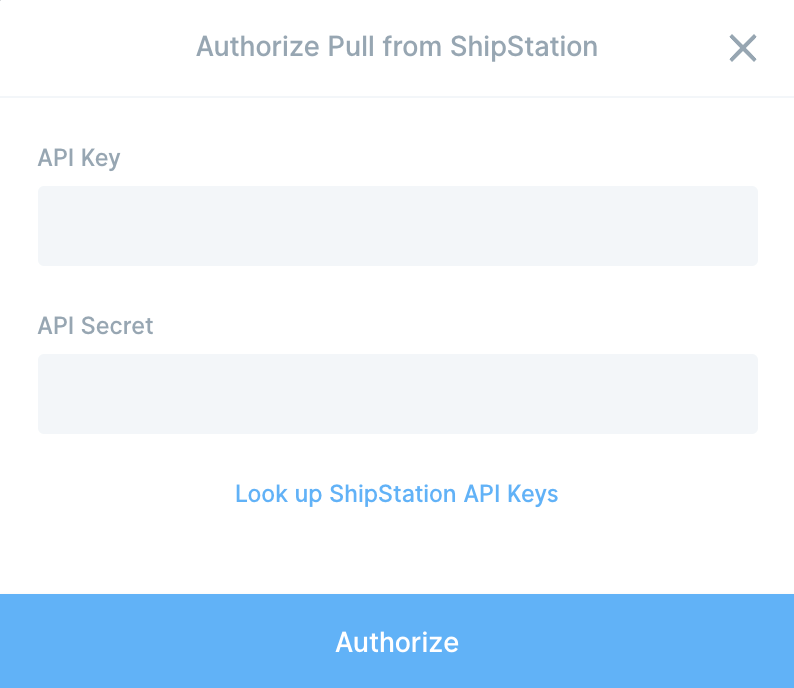 After clickingAuthorize, you’ll need to get your API Key and Secret and add them, which will enable this flow to pull from your ShipStation account. You can find your API Key and Secret here: https://ship11.shipstation.com/settings/api.