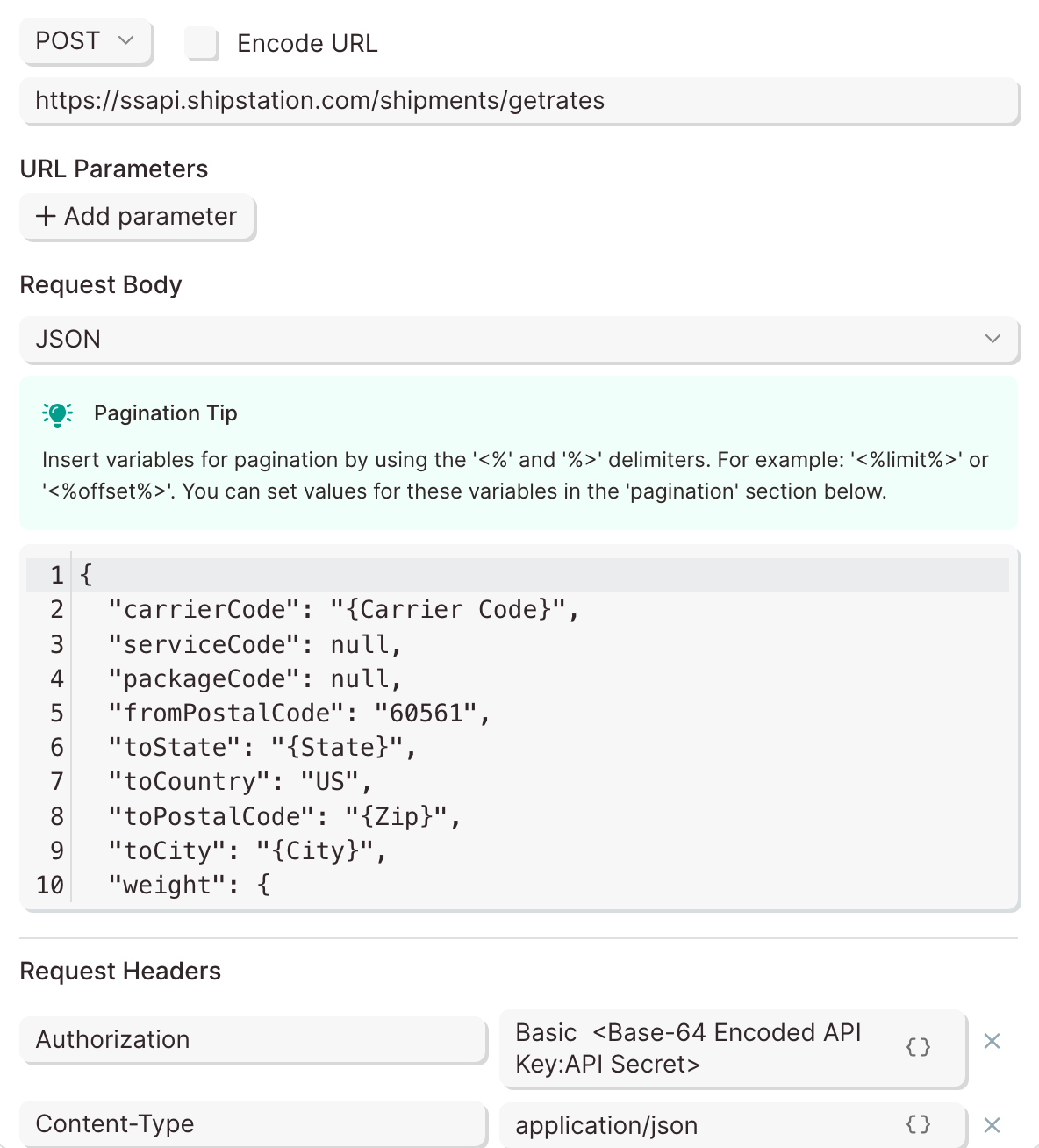 Click into the Request Settings and configure a request to list all carriers in your ShipStation account:API Endpoint URL