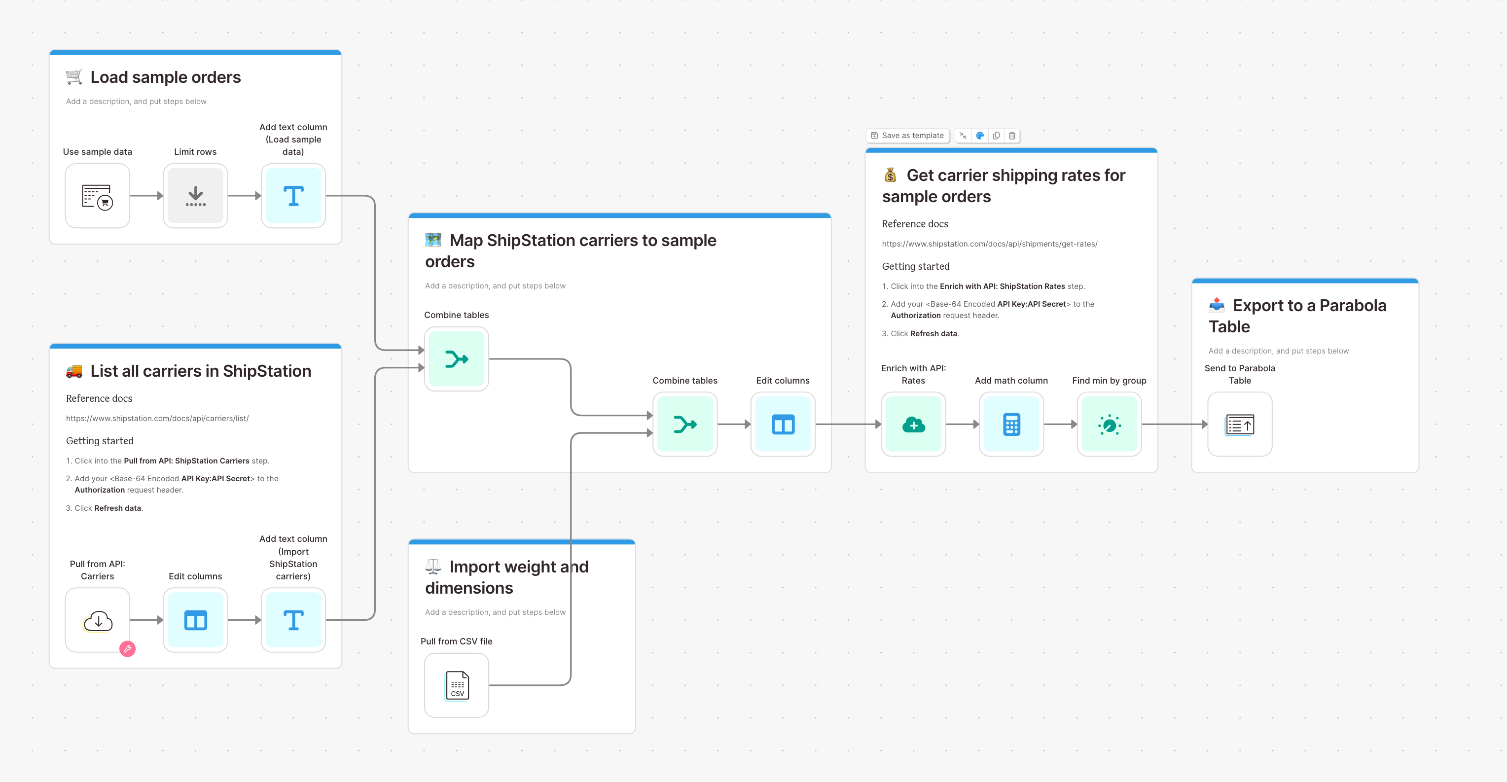 ShipStation is a web-based shipping software designed to help e-commerce businesses manage and automate order fulfillment. It provides tools for batch shipping, real-time tracking, and integrations with major carriers like FedEx, UPS, and USPS. With ShipStation, businesses can streamline their shipping process, reduce manual work, and improve overall efficiency.How to use Parabola’s ShipStation integration