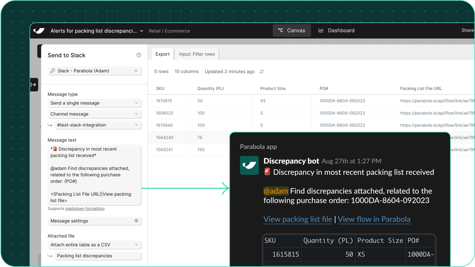 Parabola’s Slack integration allows businesses to automate notifications and streamline communication workflows.- Send automated Slack messages based on data updates and triggers