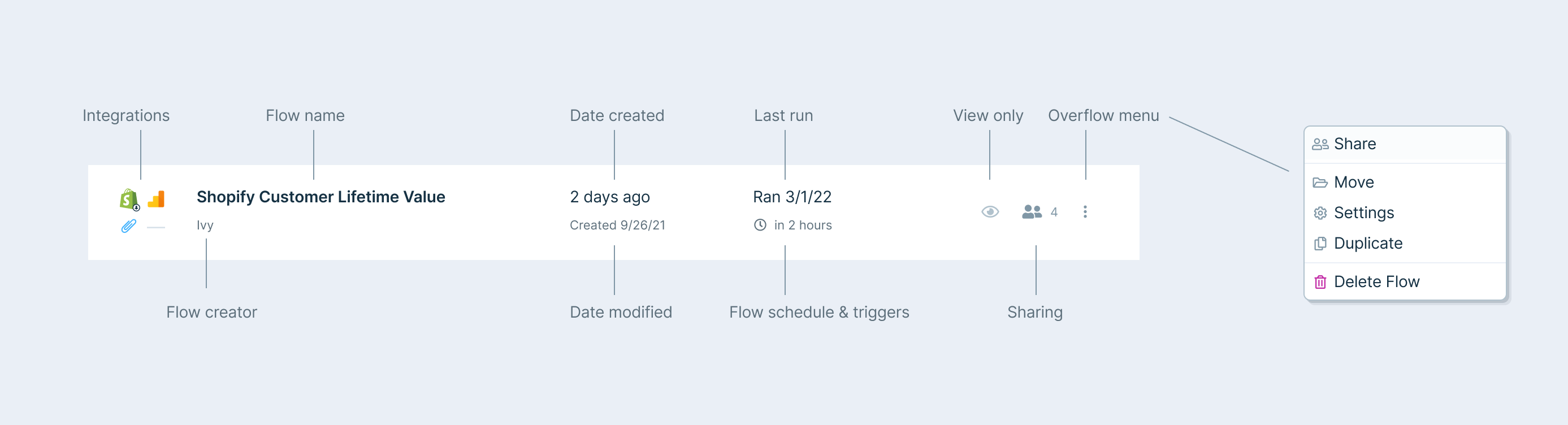 Use the search box at the top of any flows page to search for a specific flow. Your search will correspond to the page you start from, meaning:- If you search from “Home”, it will search across all flows you have access to