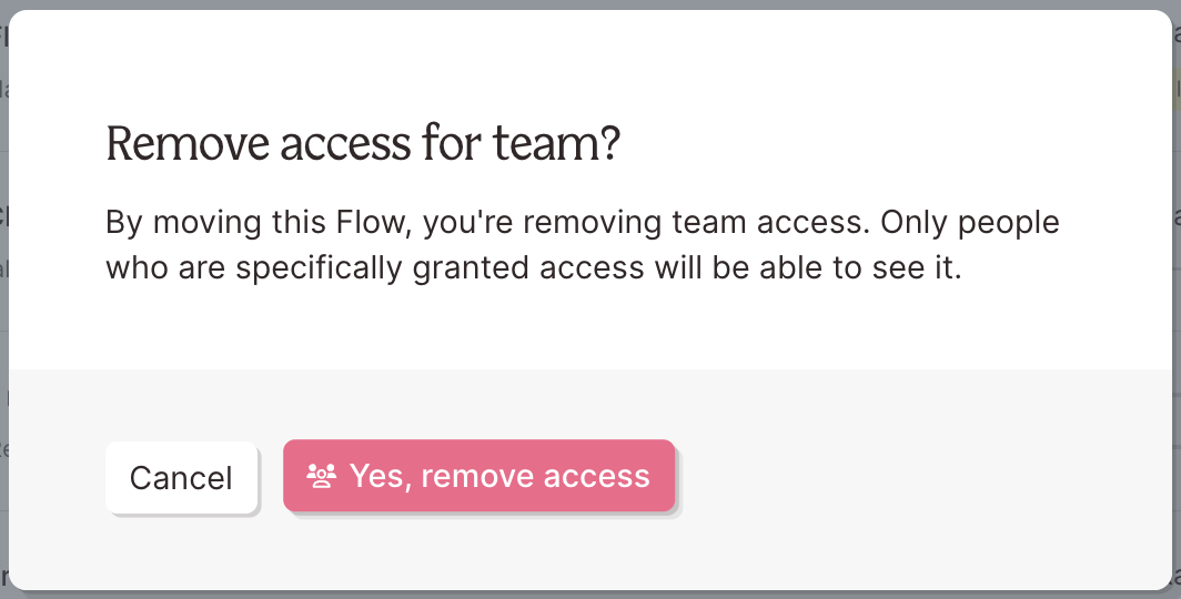 This will automatically remove your team’s access. However, anyone that the flow was shared with directly (see Sharing a flow) will retain access.