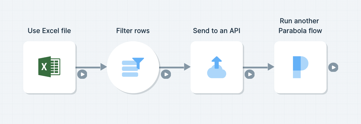 - It can be beneficial or necessary to split large and complex Parabola flows into multiple pieces. In order for your data to processed correctly, you may need a flow to run exactly after another flow. In this case, you can add the Run another Parabola flow step destination after the last step of your flow, and have it trigger the next flow in your sequence.