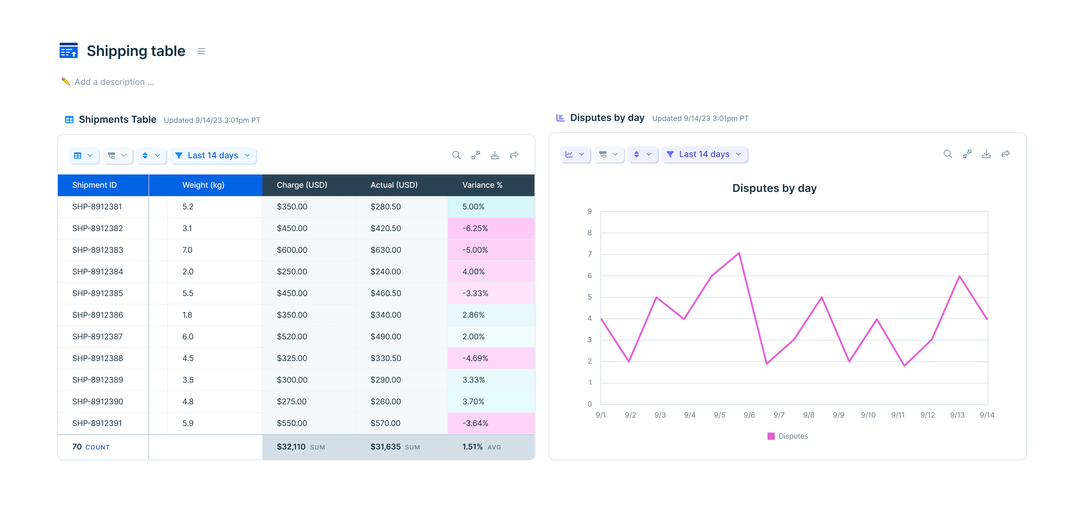 Views are individual visualizations, accessible from the Visualize step, or on the flow dashboard. The data connected to a Visualize step acts as a base dataset, which you can customize using views. Views can be visualized as tables, featured metrics, charts, and graphs. Ready for a deeper dive? This Parabola University video will walk you through some of the configurations available to fine-tune how you see your data.Page layout