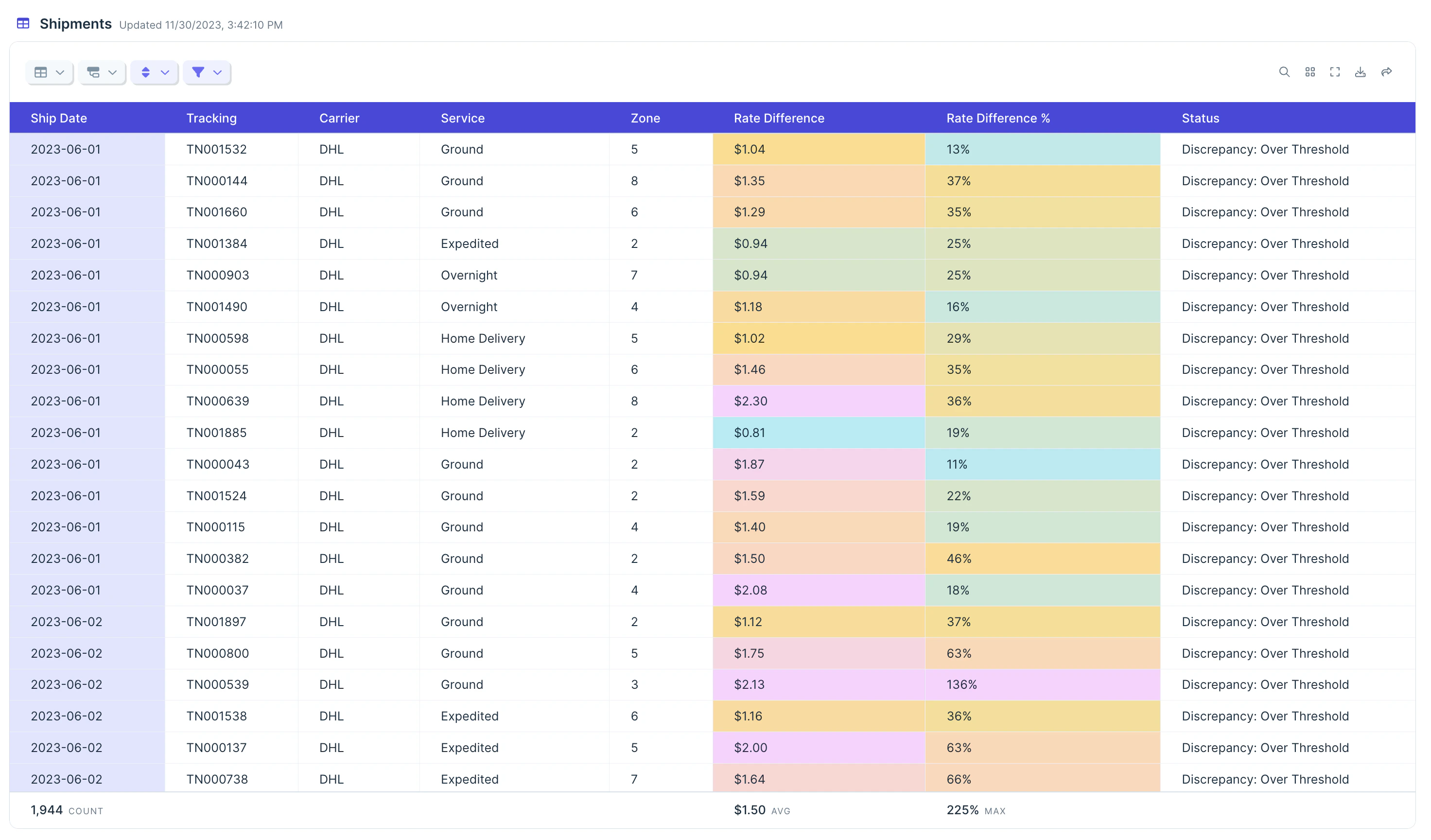 Click the “Filter” button to quickly add a new filter rule (or the view options menu). These filters define which rows are kept in the view. Filters work with dates – select the “Filter dates to…” option, and utilize either relative ranges (e.g. “Last 7 days”) or specify exact ones.Data formatting