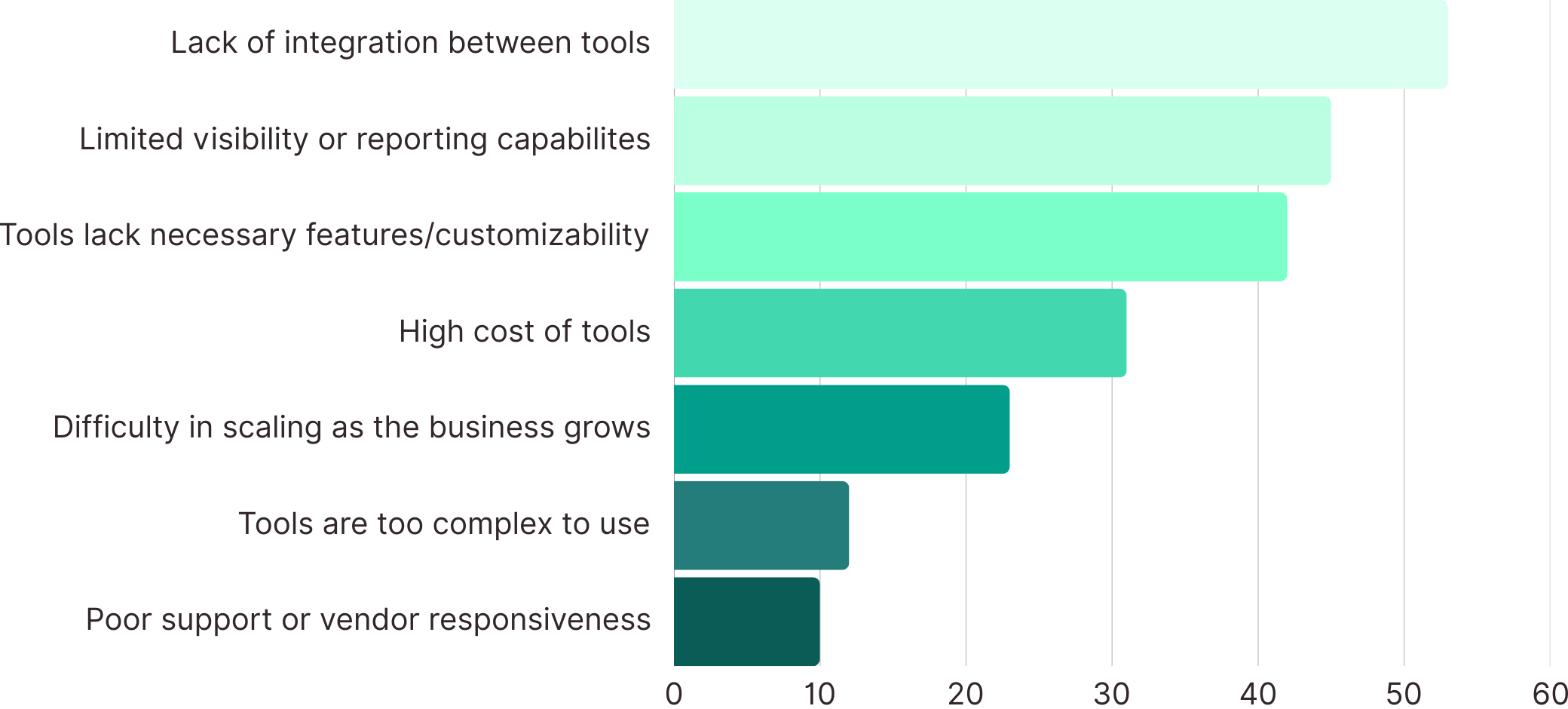 - 60% of respondents cite lack of integration between tools as their primary pain point