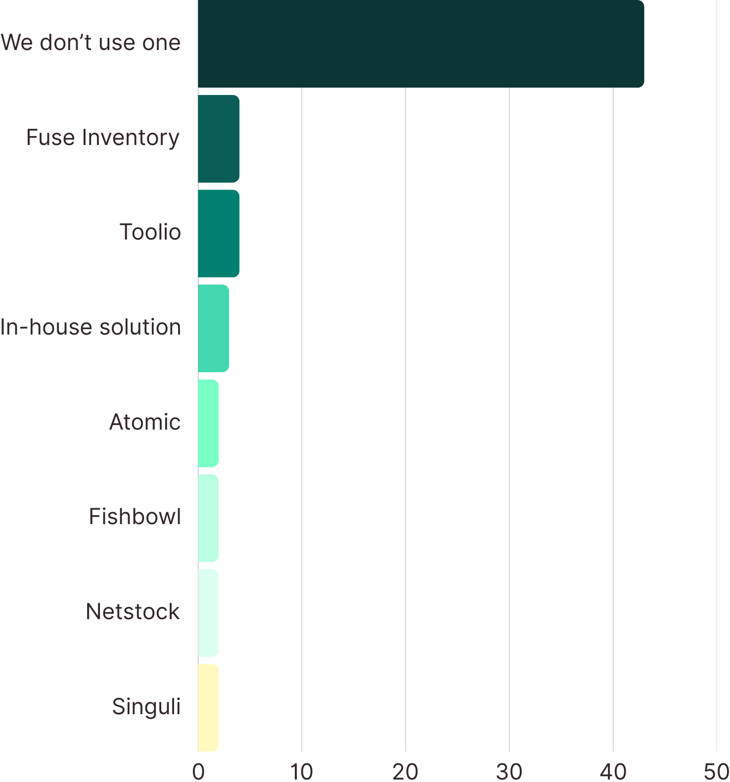 While 57% of respondents do not use any inventory and demand planning tools, there was a wide range of technology reflected here. 5% of respondents report using Fuse Inventory, with 3% using Atomic, Fishbowl, Netstock, and Singuli.
