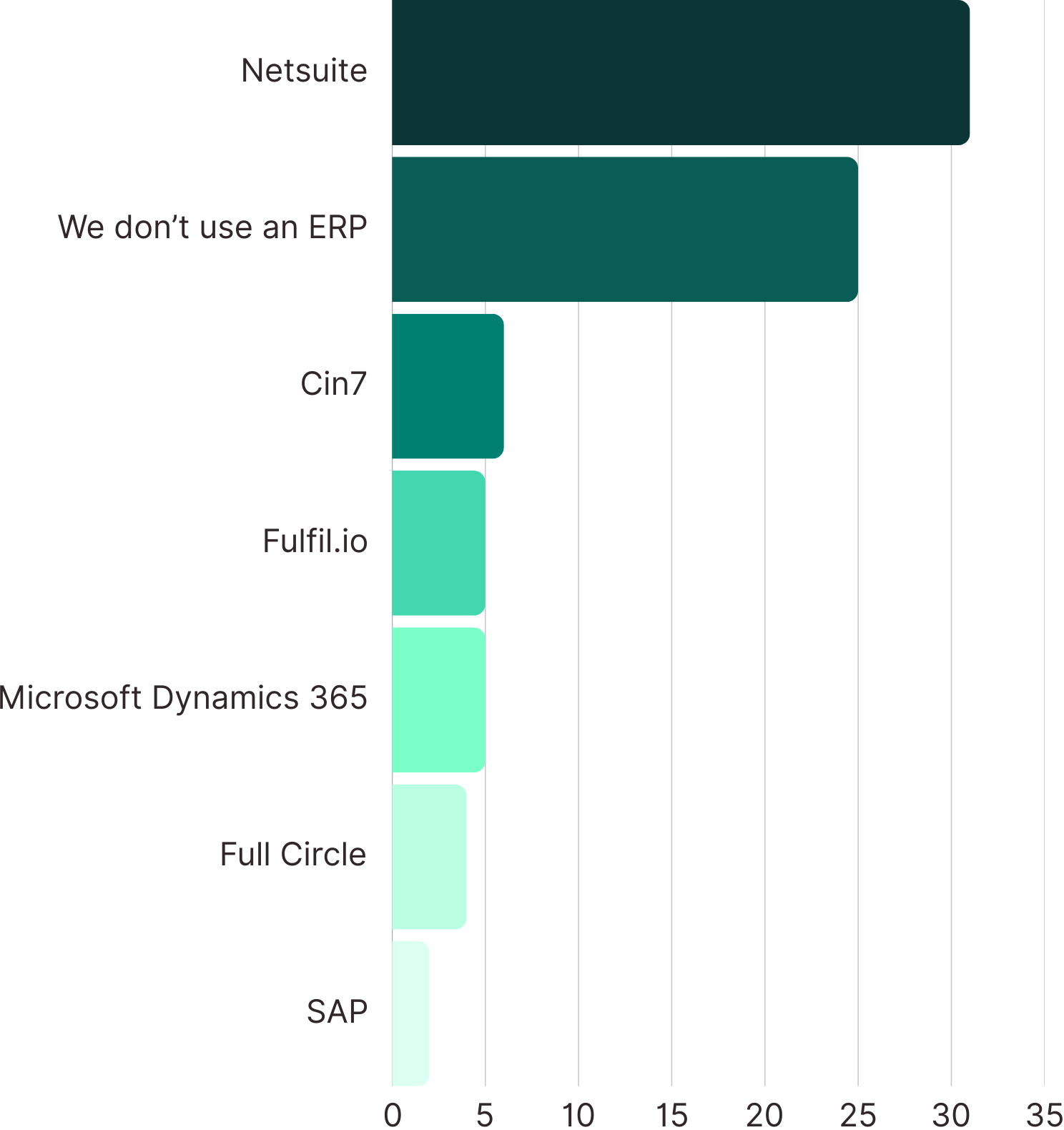 The majority of respondents (36%) use NetSuite, and closely behind that at 29% are the group of respondents who don’t use an ERP.